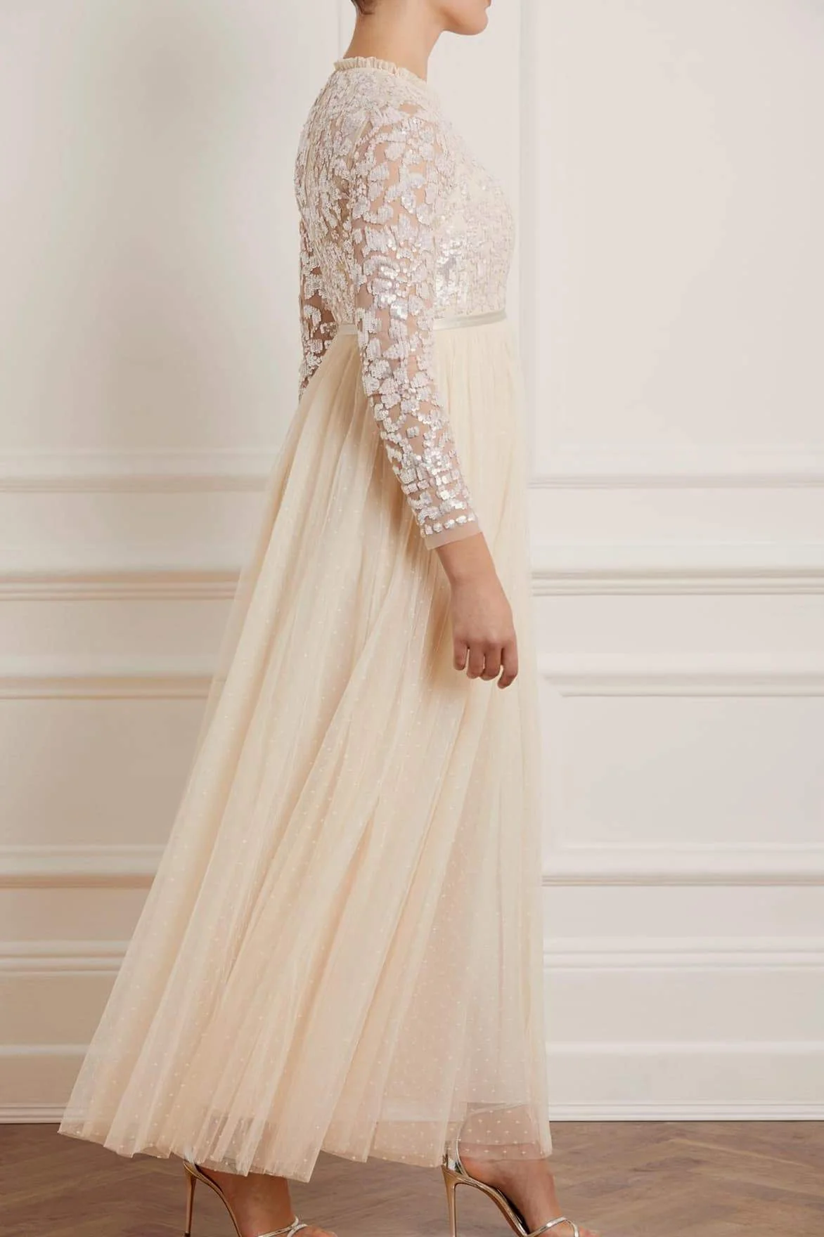 Empírem se zčásti inspirují rozkošné svatební modely britské značky s poetickým názvem Needle & Thread. Objevily jsme je s mojí bývalou kolegyní Kájou při hledání jejích svatebních šatů... a samozřejmě synestetického svatebního parfému! Je to neskutečná náhoda, ale Kája a Dan slaví právě dnes půlkulaté výročí svatby! Kájo, Dane, blahopřeji! Co se týče modelů od "Jehly a nitě", zleva doprava defiluje Petunia Cap Sleeve Gown, Genevieve Ruffle Gawn a Tempest Bodice Gawn. Pokud chystáte v rodině svatbu, poslužte si. A synestetický parfém můžeme vybrat spolu.