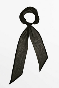 2. Bílou bavlněnou košili, černou hedvábnou vázačku a šátek s porcelánovým motivem. Šátek budete nosit přeložený na trojúhelník a přehozený přes obě ramena špičkami dolů. Bude to trochu staromódní, ale přesně to potřebujeme k vyvážení modernosti overalu. Zleva doprava košile Ralph Lauren Jamelko Long Sleeve, vázačka Massimo Dutti, šátek Weekend Max Mara. Foto via Zalando.